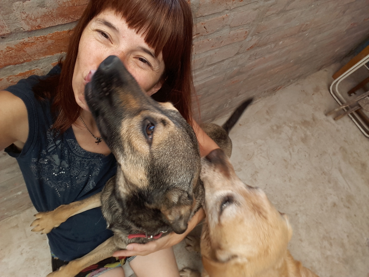 Elizabeth trabaja en forma voluntaria en Zoonosis San Martin con amor y paciencia socializa perros abandonados alli.
