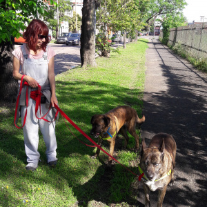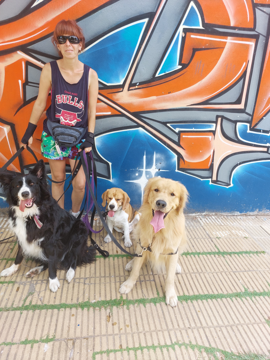La conozco porque es voluntaria de Zoonosis San Martín y la veo pasear a los perros de allí. Tiene un muy buen manejo de la correa y del perro, incluso en perros grandes. Además le interesa mucho el adiestramiento y el comportamiento animal.