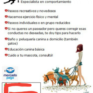También cuido a tu mascota en tu casa, si no queres sacarlo de su lugar, incluye paseo.
